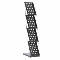 Prezentační skládací stojan se čtyřmi přihrádkami ve formátu A4. Konstrukce stojanu je vyrobena z oceli s černým lakováním. K rozložení stačí pouze vytáhnout směrem nahoru a zajistit ve spodní části stojanu polohovací páku. Součástí jsou výškově stavitelné - vyrovnávací nožičky. Rozměr složeného stojanu: 360 x 270 x 175 mm. Rozměr rozloženého stojanu: 390 x 270 x 1315 mm. Hmotnost: 4,1 kg.Prezentační stojan Twinco, skládací, 4 přihrádky