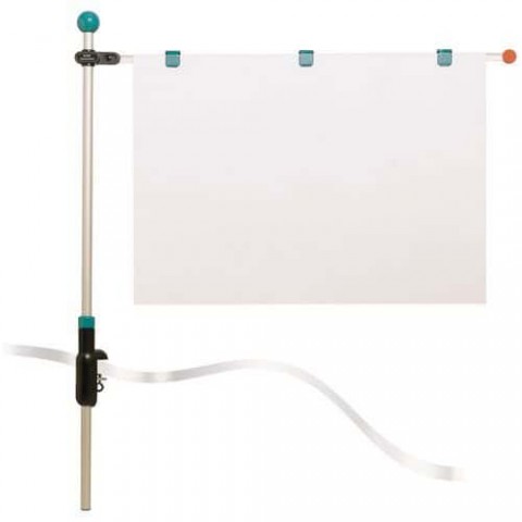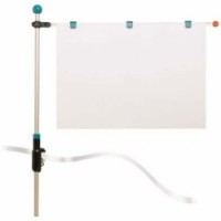Stabilní zobrazovací systém stolní plánů. Posuvné rameno, které lze otáčet, natáčet a sklápět. Područky lze prodloužit: lze použít až 5 dalších područek. Dokumenty jsou bezpečně uchyceny pomocí magnetické svorky. Výškově nastavitelný držák plánů vybavený montážním svěrákem.Prezentační systém Hebel – držák stolní plánů