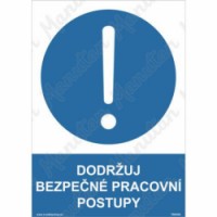 Bezpečnostní značení tabulkou, značkou nebo samolepkou "Dodržuj bezpečné pracovní postupy" tiskneme na vysoce kvalitním materiálu, barvami s vysokou odolností proti otěru a UV záření. Tím zajišťujeme splnění požadavků Nařízení vlády č. 375/2017 Sb., ČSN ISO 3864-1, ČSN ISO 3864-2, ČSN ISO 3864-3, ČSN ISO 3864-4.Příkazové tabulky - Dodržuj bezpečné pracovní postupy