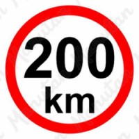 Bezpečnostní značka, tabulka nebo samolepka "Omezení rychlosti – 200 km/hod" plně odpovídá požadavkům právních a technických předpisů. Zejména Nařízení vlády č. 375/2017 Sb., ČSN ISO 3864-1, ČSN ISO 3864-2, ČSN ISO 3864-3, ČSN ISO 3864-4. Kvalitní samolepící reflexní značení nejvyšší povolené rychlosti vozidel. Je určeno pro vozidla kategorií M2, M3, N2, N3, O, OT, S . Podle vyhl. č. 341/2014 Sb musí mít na zádi karoserie v levé polovině vyznačenou nejvyšší povolenou rychlost z retroreflexního materiálu třídy 1 podle ČSN EN 12899-1. Není-li možno u přípojných vozidel kategorie O1, O2, R, vozidel kategorie S, jednonápravových traktorů s přívěsem a speciálních nosičů pracovních adaptérů umístit označení o průměru 200 mm, je přípustné použít označení o vnějším průměru 150 mm. Samolepka průměru 150 nebo 200 mm s označením nejvyšší povolené rychlosti v provedení z retroreflexní fólie třídy 1 dle ČSN EN 12899-1, odpovídající platnému znění vyhlášky 341/2014 Sb.Příkazové tabulky - Omezení rychlosti 200 km/h