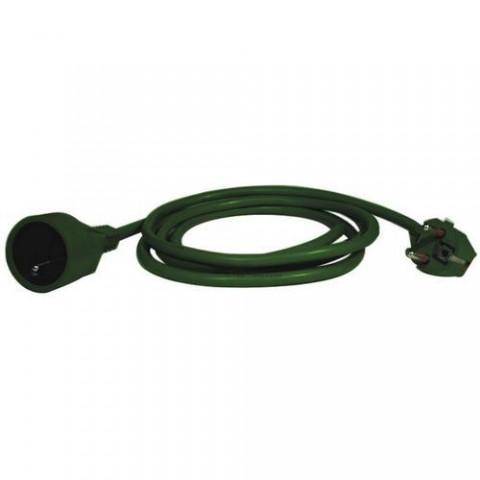 Prodlužovací přívod s jednou zásuvkou. Prodlužovací přívod na 250 V~ slouží k prodloužení elektrické energie tam, kam pevná zásuvka nedosáhne. S dětskými clonky. Zásuvka typu 2P + PE. Izolace z PVC v zelené barvě. Maximální zátež je 2 300 W.Prodlužovací kabel Emos, H05VV-F3G 1 mm2, 5 m