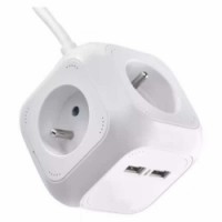 Prodlužovací kabel s rozbočovací zásuvkou ve tvaru kostky. 4 klasické zásuvky a 2 USB nabíjecí výstupy. Kostka je vyrobená z PVC v bílé barvě. Vhodný do pracovny a kanceláře. Maximální zátěž 3 680 W.Prodlužovací kabel kostka Emos s USB, 4 zásuvky, 1,9 m