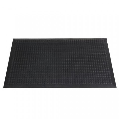 Protiúnavová rohož snižuje bolest kloubů a páteře při delším stání. Bublinový povrch stimuluje po dobu stání krevní oběh v chodidlech a následně v celém těle, čímž snižuje únavu a zvyšuje koncentraci. Vyhovuje normě pro hořlavost.Protiúnavová průmyslová rohož, 90 x 60 cm