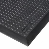 Individuální gumová protiúnavová rohož odolná vůči většině průmyslových olejů. Ergonomicky vyvinutá podložka Skystep™ využívá sílu vzduchu. Rodina byla navržena tak, aby přilnula k podlaze a zabránila uklouznutí a zároveň zachytávala vzduch ve svých buňkách. Tyto jednotlivé rohože o tloušťce 13 mm mají zrnitý povrch s ergonomickými bublinami, které zmírňují únavu. Dílčí rohože nevyžadují žádnou speciální instalaci. Vhodné pro náročné použití v suchém prostředí.Protiúnavové rohože Skystep™ Nitrile s bublinkovým povrchem, černá