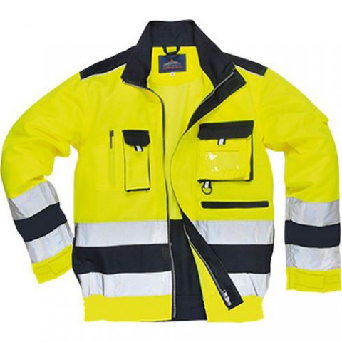 Stylová dvoubarevná bunda s reflexními pásy pro vysokou viditelnost. Celkem 10 kapes pro ukládání věcí. Tkanina odráží 98 % UV záření (50+ UPF). Vnější tkanina 65% polyester, 35% bavlna 245 g. Splňuje normy EN ISO 20471 Třída 3.Reflexní bunda Lillie Hi-Vis, žlutá/modrá