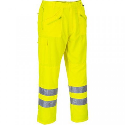 Reflexní pracovní kalhoty vhodné pro práce na silnicích aj. Celkem 11 kapes pro ukládání věcí, elastický pás pro pohodlné nošení. Tkanina odráží 98 % UV záření (UPF 50+). Vyrobeno za 65% polyesteru a 35% bavlny 245 g. Splňují normu EN ISO 20471 Třída 2.Reflexní kalhoty Candy Hi-Vis, žluté