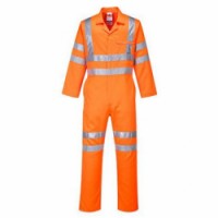 Pracovní kombinéza vhodná pro pracovníky v železničním odvětví. Čtyři kapsy pro ukládání věcí, náprsní kapsa na mobil. Zapínání na skrytý dvoucestný zip, elastický pás. Tkanina odráží 98 % UV záření (50+ UPF). Vyrobeno z kombinovaného materiálu 80% polyesteru a 20% bavlny 280 g. Splňuje normu EN ISO 20471 Třída 3; RIS-3279-TOM ISSUE 1.Reflexní pracovní kombinéza RIS Hi-Vis, oranžová