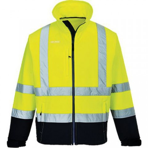 Větruodolná a prodyšná softshellová bunda s reflexními prvky. Celkem 4 kapsy pro ukládání věcí, kapsa na mobil, voděodolný zip, nastavitelné manžety na suchý zip. Vnější tkanina 94% polyester, 6% elastan 160 g laminátovaný ke 100% polyester Micro Polar Fleece 150 g. Splňuje normu EN ISO 20471 Třída 3.Reflexní softshelová bunda Contrast Hi-Vis, žlutá/modrá