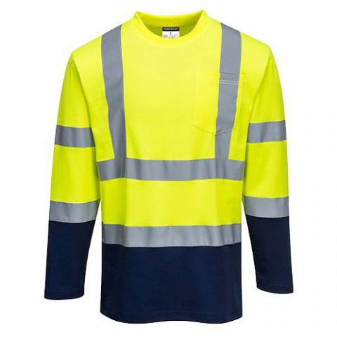 Reflexní tričko s dlouhým rukávem Cotton Comfort Plus Hi-Vis, žluté/modré