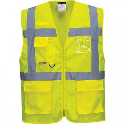 Celosíťovaná vesta s reflexními pruhy a výraznou žlutou barvou poskytuje vysokou viditelnost a zvyšuje bezpečnost pracovníků. Použitý materiál zajišťuje cirkulaci vzduchu a poskytuje tak nositeli pohodlí i v teplejších podmínkách. Zapínání na zip pro snadnější přístup. Součástí vesty jsou dvě velké a dvě menší kapsy, smyčka na radiostanici, kroužek na připevnění např. klíčů a držák dvou ID karet, který umožňuje použití jak na výšku tak i na šířku. Vnější tkanina 100% polyesterová síťovina, 150 g/m2. Splňuje normu EN ISO 20471 Třída 2.Reflexní vesta Athens MeshAir Hi-Vis, žlutá