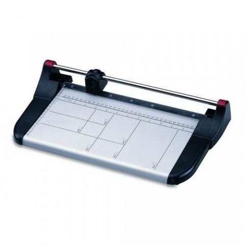 Kvalitní kolečková řezačka s pevnou kovovou základnou určena pro formát A4. Maximální tloušťka řezu 0,7 mm. Rotační nůž z nerezové tvrzené oceli.Řezačka KW eco 33