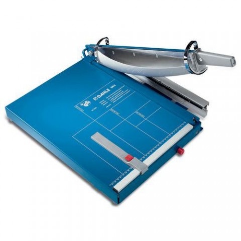 Profesionální páková řezačka na papír DAHLE 565 s délkou řezu 390 mm. Kapacita řezání až 40 listů formátu A4. Vybavena posuvným měřidlem a pravítkem s aretací. Rotační kryt nože zajišťuje bezpečnost při práci. Určena pro náročnější provozy s požadavky na kvalitu a větší kapacitu zpracování.Řezačka papíru DAHLE 565, 390 mm