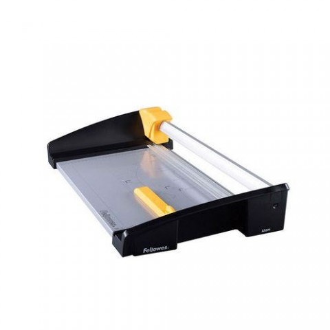 Velkokapacitní kotoučová řezačka na papír Fellowes Atom s délkou řezu 380 mm. Řezání probíhá mezi řezným kotoučem a nabroušeným spodním protinožem, možnost řezání i tvrdších materiálů. Vhodné pro řezání velkého množství dokumentů.Řezačka papíru Fellowes Atom, formát A3