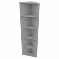 Rohová skříňka se čtyřmi policemi. barva: stříbrná rozměry v x š x h: 178 x 38 x 38 cm materiál: dřevotříska počet polic: 4 nosnost police: 17,5 kg provedení: rohové 2mm ABS hrany, desky tloušťky 25 mm (horní deska a police) a 19 mm (boční desky), dodáváno v demontovaném stavu (spojovací materiál součástí balení)Rohová vysoká skříň Classic line, 178 x 38 x 38 cm, otevřená