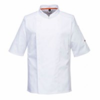 Rondon pro kuchaře z elastické tkaniny se síťovanými provzdušňovacími panely MeshAir Pro C746 nabízí ideální řešení, když je v kuchyni horko. Ideální řešení pro práci v kuchyni. Výrazné lemování, dvojité zapínání a kapsa na tužku. Odolná směsová tkanina pro vysoký výkon a maximální pohodlí uživatele Extrémně voděodolná povrchová úprava tkaniny Texpel™ Splash Eco bez PFAS, voda se na povrchu tkaniny shlukuje do kapek a stéká. Provzdušněná síťovina MeshAir™ v podpaží pro zvýšení proudění vzduchu Slim fit pro výjimečné pohodlí Skrytá přední část pro snadný přístup Kapsa na rukávu Poutko pro bezpečné uložení 1 kapsa pro bezpečné uložení věcí Lze prát v pračce při 60° CRondon s krátkým rukávem Stretch Mesh Air Pro, bílá