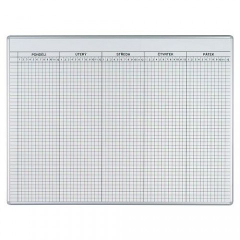 Magnetická tabule s rastrem pro rozvrh hodin až pro 40 tříd (rozsah 1 – 12 hodin). Povrch není popisovatelný fixem. Standardní barva rastru černá. Díky sendvičové konstrukci má tabule vysokou tuhost a odolnost. Tabule je opatřena kvalitním elegantním rámem z eloxovaného hliníkového profilu ve stříbrném odstínu s šedými plastovými rohy. Tloušťka tabule je 22 mm. Součástí balení je kompletní montážní sada pro upevnění na stěnu. Česká výroba.Rozvrhová tabule ekoTAB 40