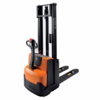 Vysokozdvižný zakladač s elektrickým pojezdem i zdvihem do výšky 3,3 m. Určený k lehkým a středním aplikacím v obchodech nebo menších skladech. Napájeno akumulátorem, nabíječka součástí balení. Díky menším rozměrům a systému Click-2-Creep umožňuje pohodlnější manipulaci ve stísněných prostorech. Technologie BT powerdrive poskytuje nejmodernější systém vedení řídicích signálů. Vysoká stabilita díky BT castorlink. nosnost: 1 000 kg délka vidlic: 115 cm šířka vidlice: 18 cm vnější šířka vidlic: 57 cm minimální výška zdvihu: 9 cm rychlost zdvihu: 8,4 m/min (bez zátěže 16,8 m/min) rychlost pojezdu: 100 m/min (bez zátěže 100 m/min) poloměr otáčení: 1 340 mm počet kol ve vidlicích: singl materiál kol: řídicí guma (friction); vidlicová vulkollan; pomocná vulkollan průměr kol: řídicí 85 mm; vidlicová 230 mm; pomocná 125 mm ložiska: valivá (kuličková) napájení: akumulátor 150 Ah, síťový adaptér 230 V pohon: pojezd 1 kW; zdvih 2,2 kW rozměry d x š x v: 183,1 x 77 x 215,1 - 372 cm výška stěžně: 2Ruční vysokozdvižný vozík BT Staxio SWE100 s elektrickým pojezdem a zdvihem, do 1 000 kg, výška zdvihu 3 300 mm