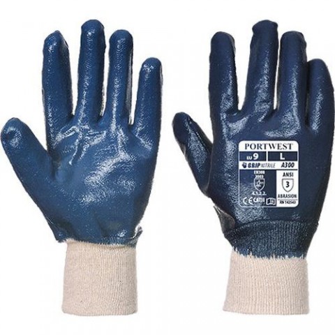 Celomáčená nitrilová rukavice A300 se zvýšenou odolností proti otěru. Ochrana před oleji mastnotou a vodou. CE certifikace Úplet Gauge 12 Odolnost vůči olejům a mastnotám Celomáčené Bavlněná podšívka Jersey v zápěstí EN úroveň oděru 4 ANSI oděr úroveň 3Rukavice nitrilová s nápletem, modrá