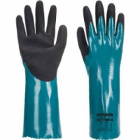 Nitrilové rukavice s pískovou úpravou pro bezpečné uchopení a odolnost proti otěru. Tyto rukavice jsou navrženy pro použití ve vlhkém a olejové prostředí. Měkká pohodlná vložka zvyšuje nošení po delší dobu. CE certifikace Úplet Gauge 18 Odlehčené Chemicky odolné rukavice Nitrilové pískové máčení CE-KAT III 30cm rukavice pro ochranu rukou a zápěstí Tloušťka dlaně 62 mil/16 mmRukavice Sandy Grip Lite, černá/modrá