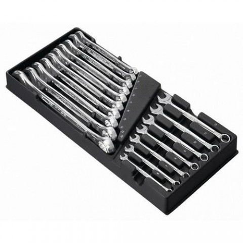 15dílná sada kombinovan??ch klíčů OGV vhodná pro válečkové skříně CHRONO XL, CHRONO+, JET XL a JET+. Zásobník z tepelně tvarované pěny.Sada 15-ti očkoplochých klíčů Facom OGV