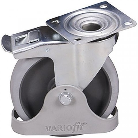 Kola z termoplastické pryže na plastovém ráfku s přesnými kuličkovými ložisky. Z šedé nešpinivé pryže.Příplatková výbava - Sada 2 pevných a 2 otočných kol s brzdou, termoplastická, 200 x 40 mm