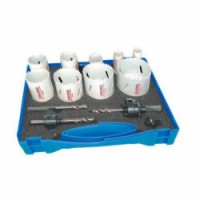 K vrtání nerezové oceli, oceli, mosazi, mědi, lehkých slitin, dřeva, sádrokartonu a plastů. Práce bez vibrací. Hloubka obrábění: 38 mm.Sada děrovacích pil Magafor, 8% kobalt, 9 ks
