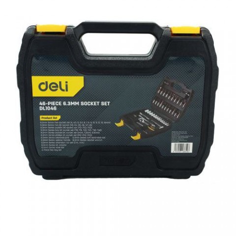 Velká sada nástrčných klíčů vyrobených z chrom vanadové oceli. Dodávané v plastovém kufříku 250 x 205 x 55 mm. Sada obsahuje: 13 ks 6-hran 1/4" nástrčné hlavice - 4 mm; 4.5 mm; 5 mm; 5.5 mm; 6 mm; 7 mm; 8 mm; 9 mm; 10 mm; 11 mm; 12 mm; 13 mm; 14 mm 1 ks 1/4" ráčna s protiskluzovou ergonomickou rukojetí a západkovým mechanismem (45 zubů) 1 ks 1/4" kardanův kloub 2 ks 1/4" prodloužení 50 mm + 100 mm 1 ks 1/4" prodloužení pružné 145 mm 1 ks 1/4" vratidlo 1 ks šroubovák pro bity 6 ks inbus - 6hranné nástrčné bity - H3, H4, H5, H6, H7, H8 3 ks PZ bity - PZ1, PZ2, PZ3 3 ks PH bity - PH1, PH2, PH3 3 ks ploché bity - 4 mm; 5.5 mm; 6.5mm 6 ks TORX bity - T10, T15, T20, T25, T30, T40 1 ks bitový adaptér 4 ks šestihranných inbusůSada gola Deli EDL1046, 46 ks