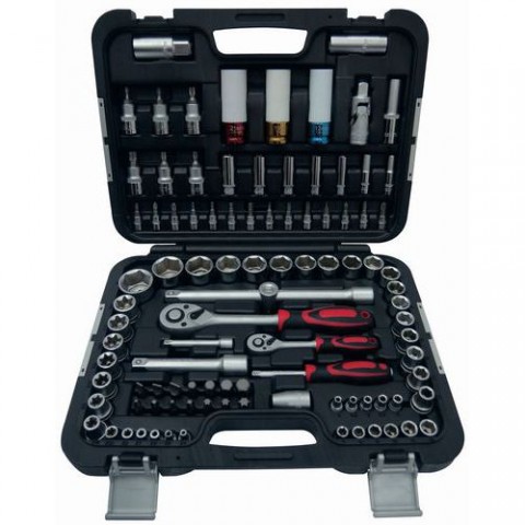 Sada servisního nářadí Agecom v praktickém kufříku. Oboustranné ráčny s 72 zuby jsou odolné proti nárazům. Rukojeť pro snadný přenos, kovové zavírací klipy a značení v kufru pro okamžitou identifikaci nástrojů.Sada ručního nářadí Agecom, 98 ks