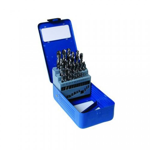 Sada vybrušovaných vrtáků HSS-G vyrobeny z vysoce kvalitní rychlořezné oceli. Ocel je zušlechtěna legurami - Wolfram 9%, Molybden 3%, Chrom 4%, Vanadium 1%. Vhodné pro vrtání ocelí do 900 N/mm2. Přesné vybroušení šroubovice pro maximální výkon. Díky vybroušení úhlu špičky vrtáku 118° lze vrtat i bez nutnosti použití důlčíku. Splňují normu DIN 338.Sada spirálových vrtáků, 25 ks
