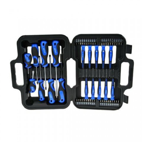 Vyrobeno ze silné chrom vanadiové oceli Magnetické hroty Rukojeť s praktickým zavěšením Rukojeť z dvou materiálů (plast + guma), měkká rukojeť Philips a ploché šroubováky Philips PH1x75mm, PH2x38mm, PH2x100mm, PH2x150mm Plochý 6x38mm, 5x100mm, 6x100mm Přesné šroubováky Plochý 2,4 x 50 mm, 3 x 50 mm Philips PH00x50mm, PH0x50mm Torx T5x50mm, T6x50mm, T7x50mm, T8x50mm, T9x50mm, T10x50mm 25 mm bitů Philips 2x PH0, 2x PH1, 2x PH2, 2x PH3 Plochý 2x 3 mm, 2x 4 mm, 2x 5 mm, 2x 6 mm Torx 2x T10, 2x T15, 2x T20, 2x T25, 2x T27, 2x T30 PoziDriv PZ1, PZ1, PZ2, PZ2, PZ3, PZ3 HEX 2x H2, 2x H2.5, 2x H3, 2x H4, 2x H5, 2x H6Sada šroubováků a bitů 58 ks GEKO