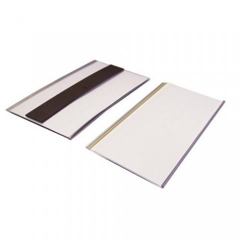 Extra velký držák samolepicích štítků, 125 mm vysoký, ideální řešení pro váš sklad. Díky velmi širokému čelnímu panelu jsou informace zobrazené na vložených štítcích pro uživatele lépe viditelné a přehledné. S držákem štítků jsou dodávány prázdné bílé karty, na které můžete doplnit vlastní informace, nebo lze na požádání dodat vytištěné štítky. Čárové kódy se snadno snímají přes průhledný materiál, takže není nutné štítky odstraňovat. Lze je zkrátit na velikost, která vám vyhovuje (až do délky 1 m).Samolepicí nebo magnetický držák štítků – Extra velký – 125 mm