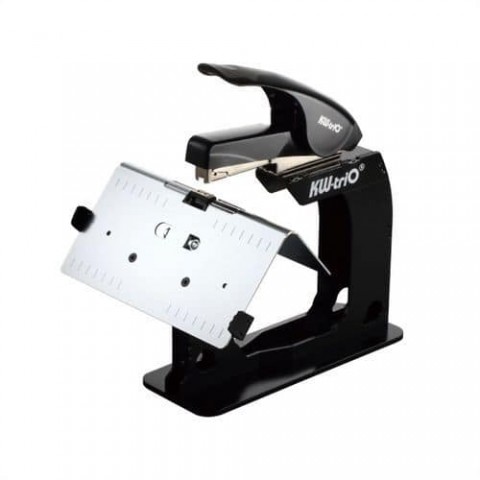 Mechanická sešívačka vhodná k sedlovému šití pro malonákladovou výrobu brožur. Stabilní gumová základna, tělo s pákovým mechanismem z kvalitní oceli. Hloubka šití až 73 mm od okraje svazku. Jednoduché vkládání spon, zásobník pojme až 210 spon. Ergonomická měkká rukojeť pro pohodlnou manipulaci. Funkce effortless, díky které je sešívání snadné s vynaložením až o 60% nižší síly. Otočná kovadlinka. Kompatibilní se sponami: 24/6, 24/8, 26/6, 26/8. Kapacita: 24/6, 26/6: až 20 listů. Kapacita: 24/8, 26/8: až 40 listů. Boční doraz pro dosažení přesného nastavení. Šití do hřbetu formátu až A3.Sešívačka pro sedlové šití KW-Trio 58A3, do 40 listů