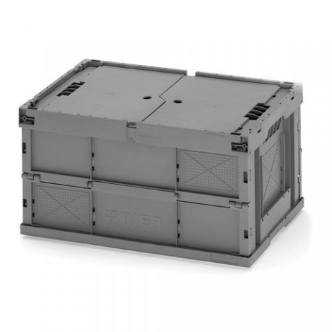 Skládací přepravka šetří místo při skladování či zpětném transportu. Dodáváno v šedé barvě ve variantě s víkem. Vyrobeno z polyetylenu.Skládací přepravka PE, s víkem