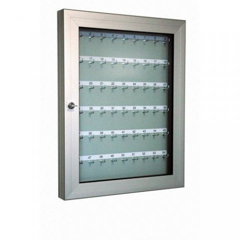 Klíčová schránka z vysocekvalitního eloxovaného hliníku dodávaná včetně montážní sady (šrouby a hmoždinky). Výpľň okna je z plexiskla. Boční otvírání. Vhodné do vnitřního i venkovního prostředí.Skříňka na klíče, 54 háčků