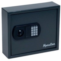 Ocelová skříňka na klíče v hranatém provedení s 60 háčky. Vysokou bezpečnost zajišťuje zámek na kód a klíč. Dodáváno včetně barevných klíčenek.Skříňka na klíče Manutan Expert s elektronickým zámkem, 60 háčků
