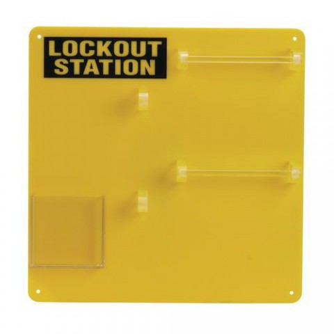 Lockout stanice pro uložení visacích zámků a blokovacích mechanismů. Uzamykatelná stanice umožňuje umístit až 10 visacích zámků, 2 uzamykatelné spony a štítky. Vyrobené z akrylu.Skříňka na zámky Brady, 10 klíčů