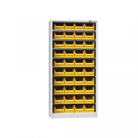 Skříně série UK jsou lehčí formou dílenských skříní. Používají se především pro ukládání méně rozměrných a lehčích materiálů nebo jako úložiště plastových boxů pro drobnější materiál. Dílenská plechová skříň je lehčí formou dílenských skříní a používají se především pro ukládání méně rozměrných a lehčích materiálů nebo jako uložiště plastových boxů pro drobnější materiál. Stabilní konstrukce z ocelových plechů.Skříňky s boxy UK1-B1, 950 x 400 x 1950 mm