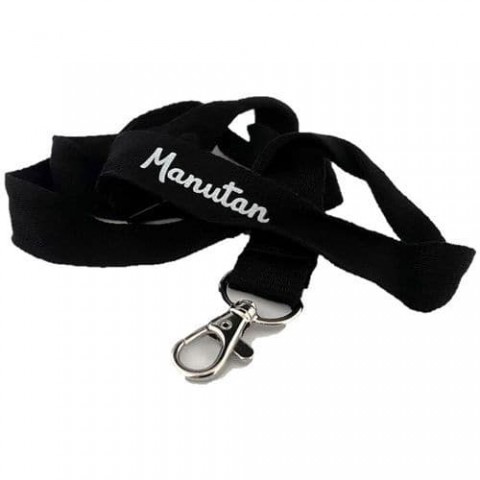 Černá praktická šňůrka na krk pro umístění jmenovky nebo jako klíčenka. Uchycení klíčů a jmenovky pomocí karabiny.Šňůrka na krk s karabinou Manutan Expert, 10 ks