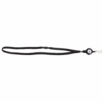 Šňůrka připevněná k navijáku se zapínáním na karabinu. Pro použití s visačkami.Šňůrka na krk s navijákem, černá