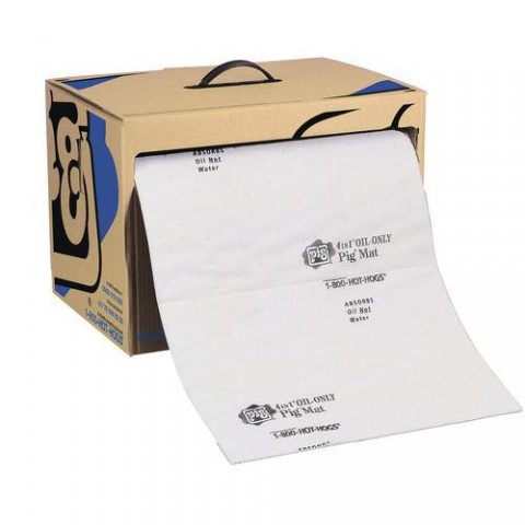 Hydrofobní sorpční koberec v kartonové krabici s uchem pro snadné přenášení. Vhodný k likvidaci olejů a produktů na ropné bázi. Lze použít jako hard na čištění a utírání nástroj??. Nevsakuje vodu a plave na vodní hladině. Snadné dávkování díky perforacím každých 25 cm.Sorpční koberec MD+ v kartonové krabici Pig, hydrofobní, sorpční kapacita 35 l