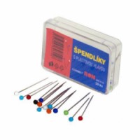 Sada 50 ks různobarevných špendlíků na korkové nástěnky a textilní tabule.Špendlíky, barevné