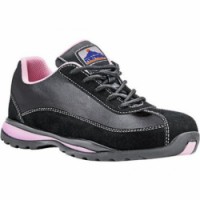 Pracovní obuv určená speciálně pro ženy s EVA/pryžovou podešví pro extra komfort a stabilitu. Antistatická obuv CE certifikace Podešev s dvojí hustotou Energii absorbující oblast paty Podešev odolná proti olejům Ocelový plátek Ocelová tužinka 200 Joule Tepelně odolná podešev - 300°C Ocelová stélka odolná proti propíchnutí Protiskluzová podešev (SRC) Kovová mezipodešev proti propíchnutí (PR) Ochranná kovová špice – náraz (I) komprese (C) Pryžová podešev protiskluznáSteelite dámské Safety Trainer S1P HRO, černá;růžová