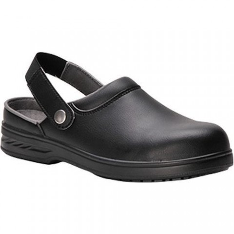 Stejné vlastnosti mikrovláken jako u FW80. Odepínací zadní proužek. Antistatická obuv CE certifikace Energii absorbující oblast paty Podešev odolná proti olejům Voděodolný svršek Ocelová tužinka 200 Joule Protiskluzová podešev (SRC) Odlehčené Samočisticí podešev Ideální pro čisté místnosti lékařské prostředí a potravinářský průmysl Odnímatelný zadní popruh Podešev Mono density Lze prát v pračce při 30° CSteelite Safety Clog SB AE WRU, černá