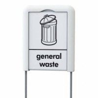 Identifikační štítek pro sběrač Midi Envirobin. Rám je připevněn k zadní části koše pomocí dvou zapuštěných tyčí. Rámeček má stejnou barvu jako koš a je určen pro plakát formátu A4 (není součástí dodávky). Celková výška 134,3 cm.Štítek Midi Envirobin – Vepabins