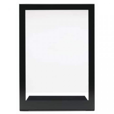 Oboustranný stojan na dokumenty s černým rámem. Elegantní rámeček zvýrazní vaše dokumenty. Sklon umožňuje lepší viditelnost a čitelnost dokumentu. Obrázky nebo nápisy se vkládají přes boční stranu stojanu.Stojánek na dokumenty Elami A4, oboustranný, na výšku