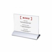 Pultové prezentační stojánky z plastu. Pevná hliníková základna. Vhodné jako stojánek na menu do restaurací. Orientované na šířku. Stojánek je standardně dodáván bez potisku.Stojánky na letáky s hliníkovou základnou JD8, na šířku