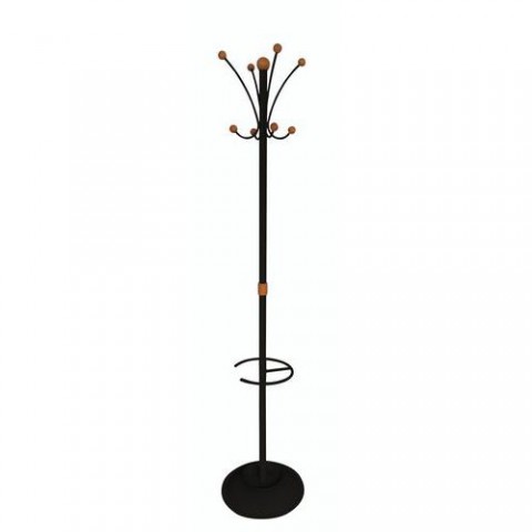 Volně stojící věšáky vhodné do předsíní, kanceláří nebo vstupních hal. Kovová konstrukce s dřevěnými detaily. Stojan tvoří osm háků na oděvy a držák na deštníky. Věšáky lze zatížit maximálně 35 kg.Stojanové věšáky Cali