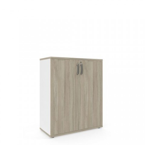 Střední skříně s dvířky pro skladování dokumentů, šanonů apod. Horní a spodní desky jsou vyrobené z laminované dřevotřísky tl. 25 mm. Dveře, zadní a boční stěny jsou vyrobené z dřevotřísky tl. 18 mm. Zadní a boční stěny včetně polic v neutrálním bílém nebo šedém provedení. Opatřené plastovými nožkami, které jsou výškově nastavitelné. Dezén v provedení buk/šedá, dub sonoma/bílá nebo dub oyster/bílá.Střední široké skříně Viva, 110 x 90 x 42 cm, s dvířky