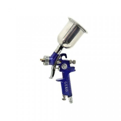 Použitá technologie HVLP (High Volume Low Presure)snižuje množství spotřebované barvy. Pistole je vybavena horní gravitační nádrží o objemu 150ml. Rotující tryska umožňuje změnit tvar proudu barvy. Knoflík pro nastavení rozstřiku umožňuje nastavit provzdušňování částic barvy. Knoflík pro nastavení materiálu umožňuje zvýšit nebo snížit množství barvy foukané tryskou. Knoflík pro nastavení tlaku vzduchu umožňuje nastavit tlak vzduchu dosahujícího pistole z kompresoru. Nerezová nádrž s objemem 150ml Vysoká úspora materiálu ve srovnání s vysokotlakými pistolemi Mosazná hlava Tryska a jehla z nerezové oceli umožňují použití barev na vodní bázi Hliníkové tělo Ergonomická a tvarovaná rukojeť Regulece množství barvy Regulace tlaku vzduchu Další regulace proudu barvy pomocí rotační trysky Typ pistole: HVLP Způsob dodání barvy: gravitace Průměr trysky: 0,8mm Šířka proudu: 70 - 100mm Doporučený pracovní tlak: 2,0 - 3,0bar Spotřeba vzduchu: 85 - 140 l/min Připojení: 1/4 rychlospojkaStříkací pistole HVLP mini, kov. zásobník 150ml max. 3bar GEKO