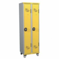 Svařovaná šatní skříň z odolného profilovaného ocelového plechu o tloušťce 0,6 mm (odpovídá 0,8 mm standardnímu). Odolná dvířka se otevírají až do úhlu 180°. Perforace ve dveřích i konstrukci skříně pro lepší odvod vlhkosti. Možnost umístění štítku se jménem. Uzamykání na visací zámek (není součástí dodávky, doporučený průměr třmenu 6 až 7 mm).Svařované šatní skříně Acial, 2 oddíly, 300 mm, na nohách, otočný uzávěr